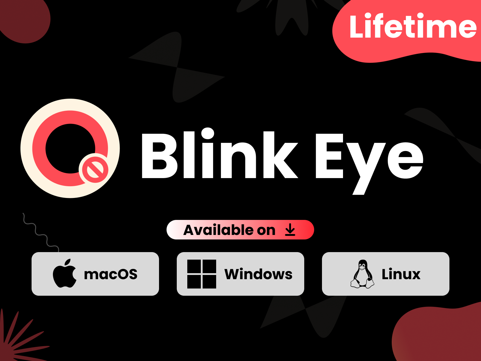 Blink Eye - An Open Source cross-platform Eye Care and Break Time reminder app. Supports: Mac (Apple Silicon Based M - Series Processor )Mac (Intel Processor )WindowsLinuxHelps you reduce eye strain with 20-20-20 rule timers, full-screen break reminder, screen on time (usage time), and custom schedule reminders. Can also be used as a break timer.